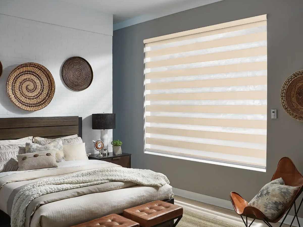 Banded shades, also known as dual or zebra shades, are innovative window treatments that offer the best of both worlds: light control and privacy. These stylish shades feature alternating strips of sheer and opaque fabric that can be adjusted to allow varying degrees of light filtration. By simply adjusting the shade, you can transition from complete privacy to a soft, filtered view of the outside world, all while maintaining a sleek, modern aesthetic.